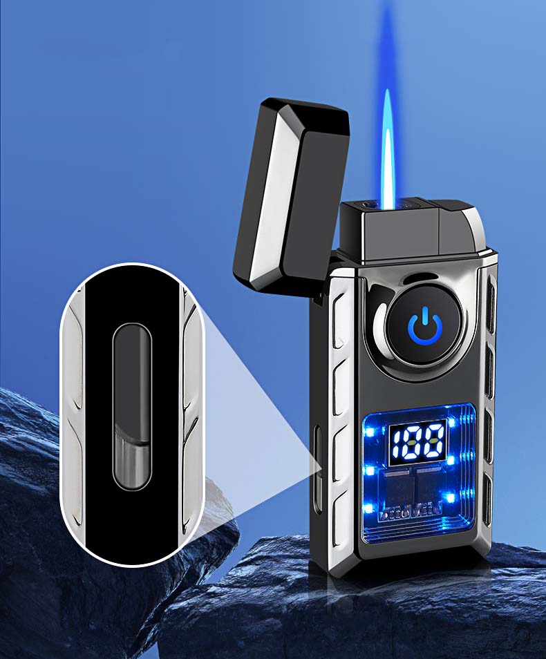 Bật lửa 2 chế độ : sạc điện và nạp gas, đèn led cao cấp