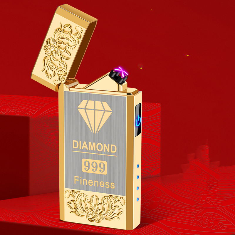 Bật lửa sạc điện mạ vàng khắc hình kim cương